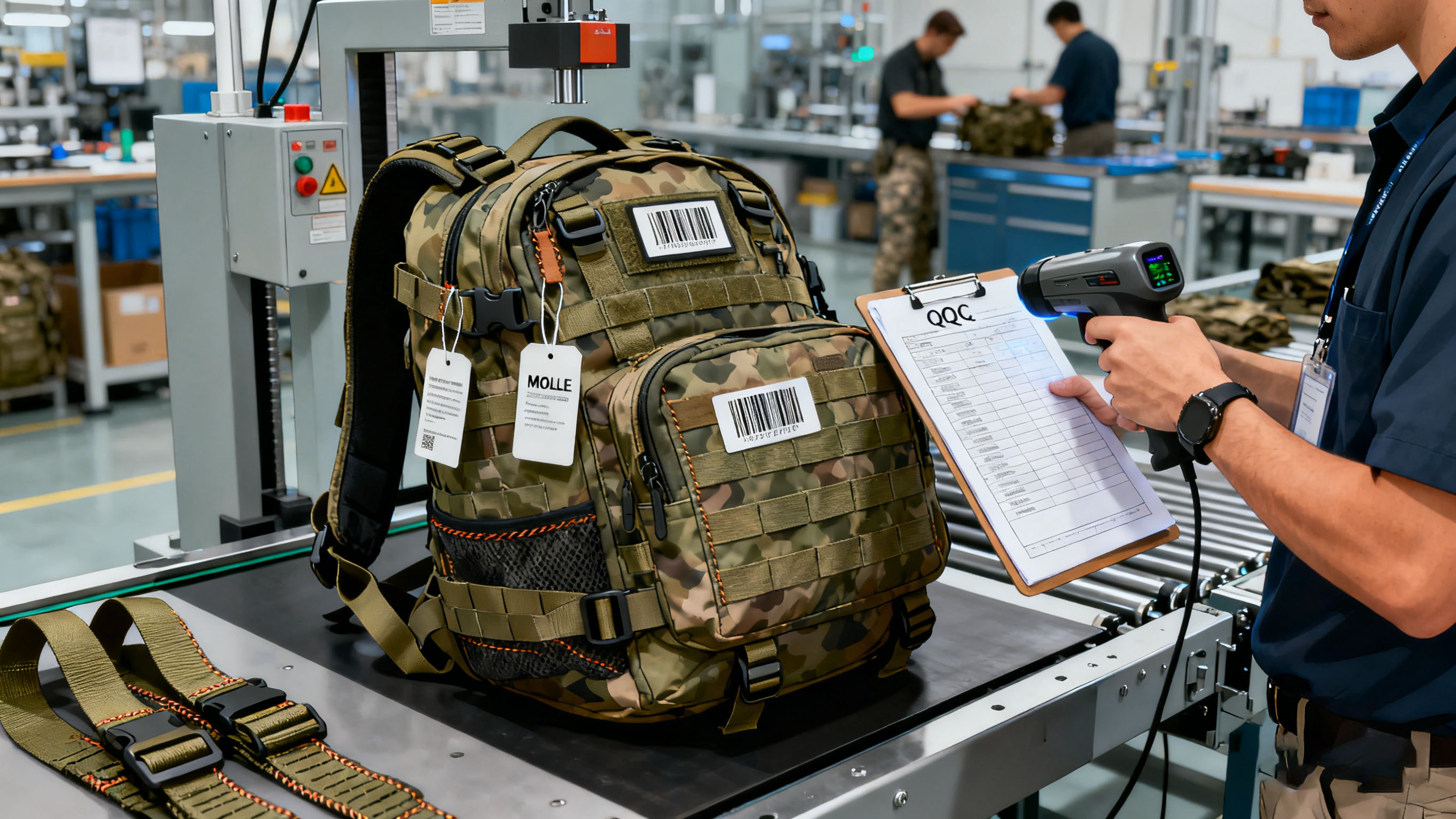 Each raw material undergoes strict verification before entering production. This is especially important for tactical gear manufacturers who handle export-grade products, as global buyers increasingly demand traceability and compliance.